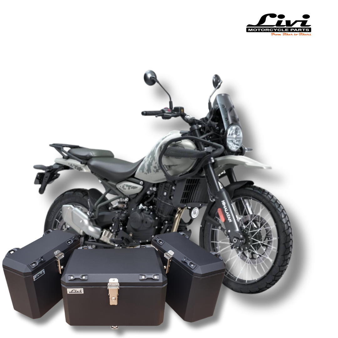KIT BAÚS LATERAIS LIVI 35L + TOP CASE 50L HIMALKAYAN 450 COM SUPORTES !