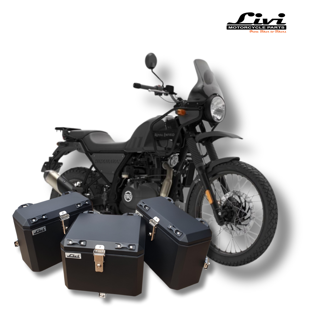 KIT BAÚS LATERAIS LIVI 35L + TOP CASE 43L ROYAL ENFIELD HIMALAYAN 400/411 COM SUPORTES !