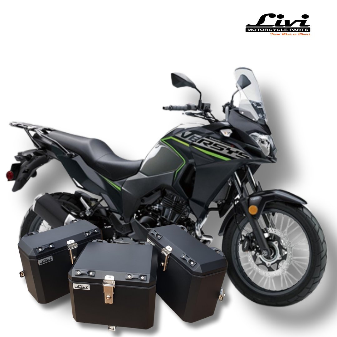 KIT BAÚS LATERAIS LIVI 35L + TOP CASE 43L KAWASAKI VERSYS X 300 COM SUPORTES !