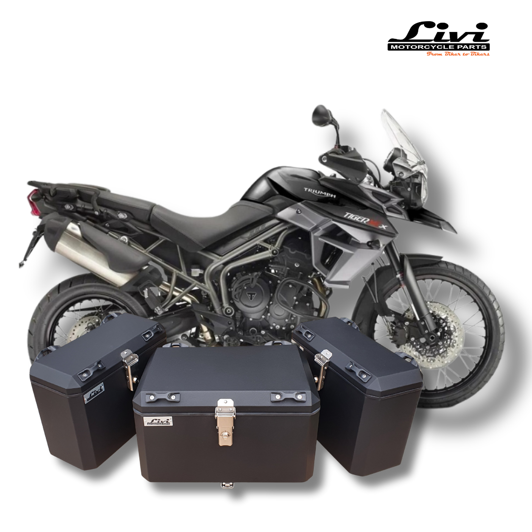 KIT BAÚS LATERAIS LIVI 35L + TOP CASE 50 LITROS TRIUMPH TIGER 800 COM SUPORTES !